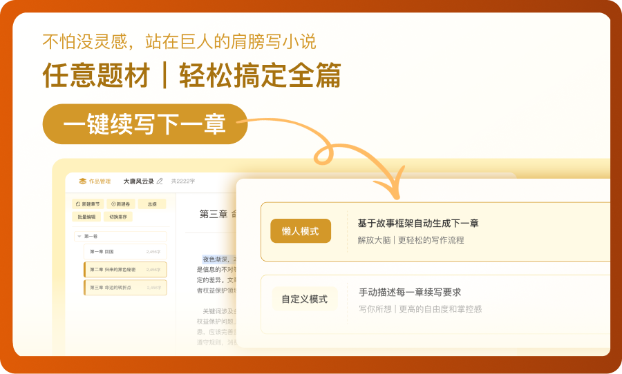 人气 41230探索无限可能,为您的故事开启新的篇章。不知道接下来怎么写?小说续写生成器带您跨越创作障碍!借助AI的力量,延续精彩,构建令人惊叹的故事情节。
